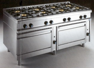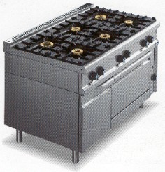 | 4 Burner boiling top on ambient cupboard (Mod. CCG9042) | 6 Burner range with gas oven & ambient cupboard (Mod. CCG90652) | 8 Burner range(Mod. CCG9085) | 4Burner range (Mod. CCG9045) gas oven with electric ignition |